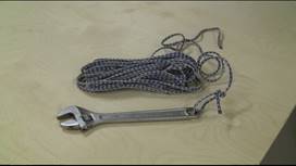 you get a pulley up on a tree limb thirty feet off the ground? Answer: with a crescent wrench! Well, you can
